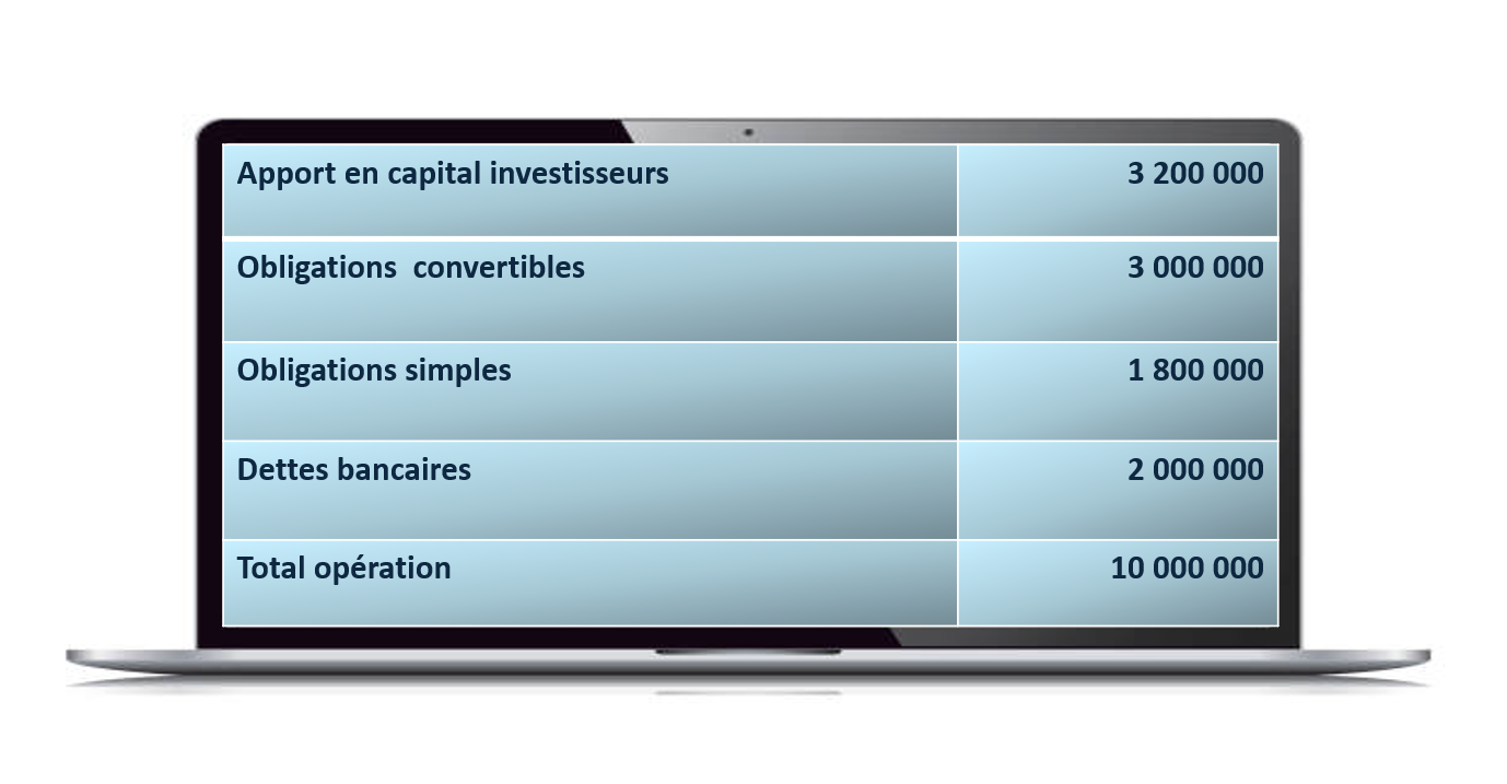| Apport en capital investisseurs | 3 200 000 € |